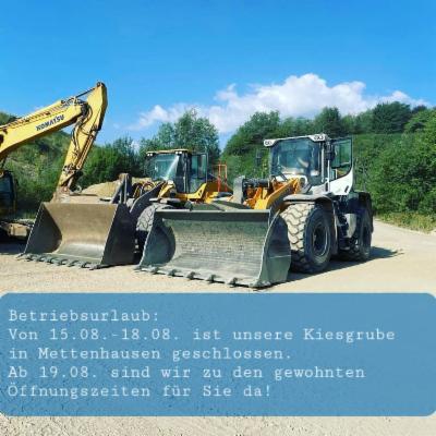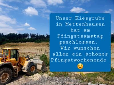 Unsere Kiesgrube hat wieder zu den gewohnten Öffnungszeiten geöffnet.