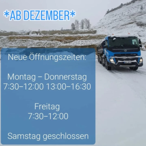 Wir schließen unsere Kiesgrube über den Winter ab dem 20. Dezember.
